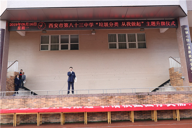 我校高二八班张雄杰同学从垃圾分类的意义、垃圾分类的行动几个方面提出了倡议,垃圾分类事小但成效大,垃圾分类并不难,只需做到了解、行动。学校总务处副主任崔高云在国旗下进行垃圾分类的宣讲,他从西安市的垃圾现状入手,让同学们了解到目前垃圾处理面对的严峻形势,表达出垃圾分类投放的宣传工作已经迫在眉睫。同时崔高云主任重点分析了德国、日本等国家对垃圾分类的管理,并详细介绍了我校垃圾分类的情况。在宣讲的尾声,他表示每个人都是垃圾的制造者,又是垃圾的受害者,更应该是垃圾的治理者!