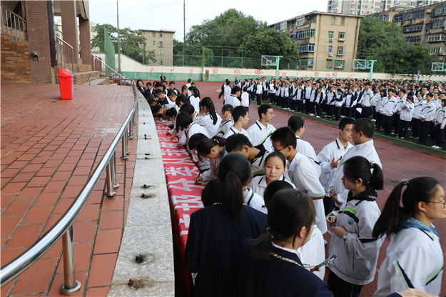 最后,学校领导及各班代表共同在横幅上进行签名,在众人的参与下,我校的垃圾分类工作一定会顺利进行。