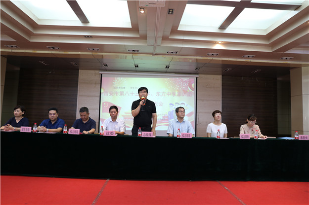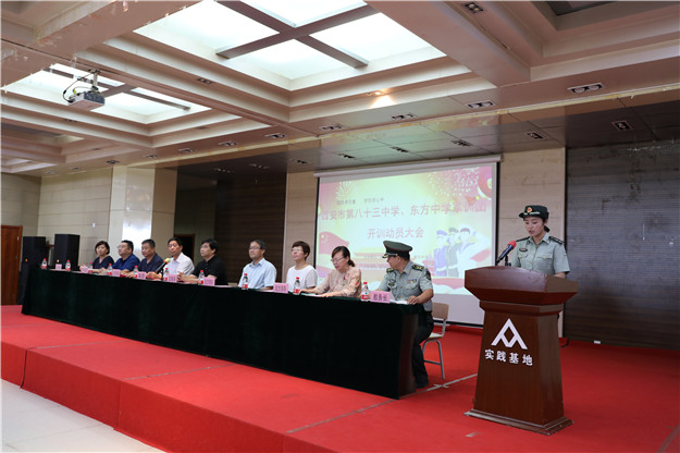 上午11点,举行新生开训仪式。西安市第八十三中学校长刘忠建,党总支书记李瑞民,副校长沙涛,东方中学校党总支书记、校长张质斌,副校长钟微,政教主任梁哲等参加了此次仪式。