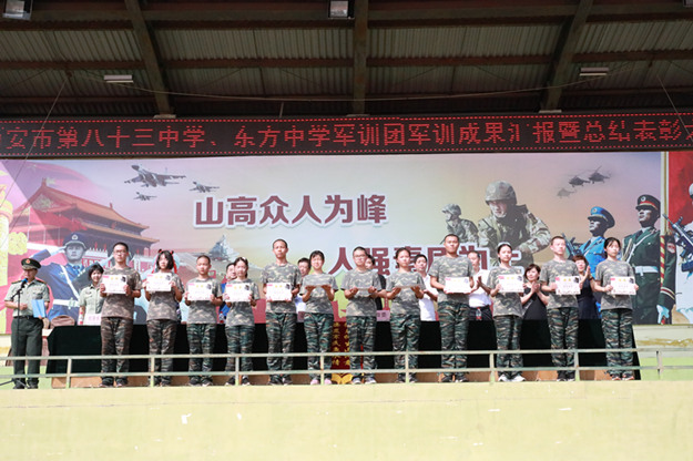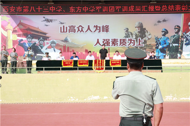 2019年9月8日,西安市中小学校外综合实践活动基地。西安市第八十三中学、东方中学高一新生军训成果汇报暨总结表彰大会如期举行。