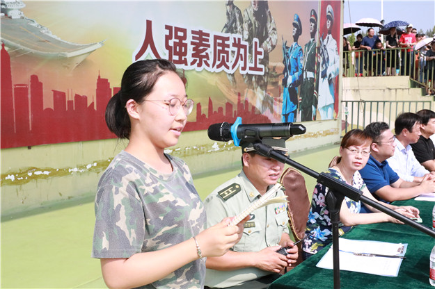 来自高一、7班的参训学员代表王乐怡同学代表高一新生发言,她总结了此次军训活动对全体高一新生的重要意义,短短的七天时间,虽艰苦,但充实。学生改掉了不好的习惯;原本陌生的同学形成了一个新的集体,紧紧地团结在一起。她代表高一全体学生表态,从自己做起,从现在做起,勤奋好学,开拓创新,学会做人,学会求知,做一名优秀的83中人,做一个无愧于时代的优秀中学生。最后她代表同学们向教官和老师们表达了真挚的感谢。