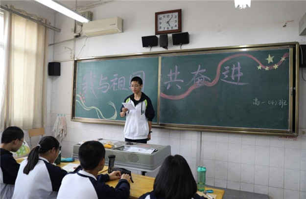 9月20日,我校高一年级在第八节课开展了以“我与祖国共奋进”为主题的主题团会,由各班班长和团支书共同主持,师生共同参与。