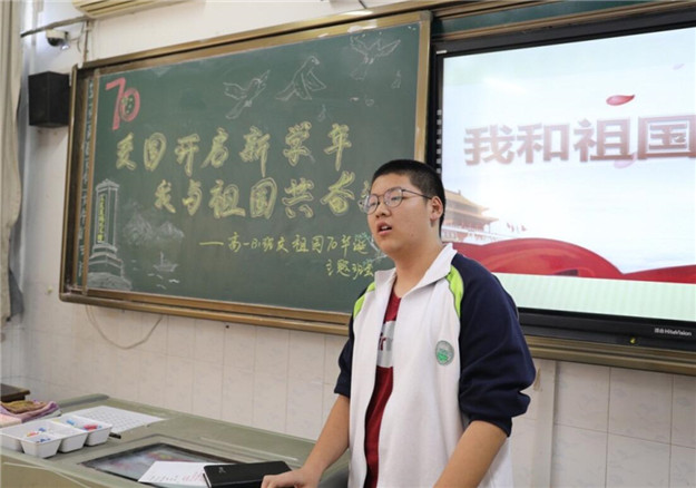 为纪念建国70周年,各班以PPT及视频形式展示了70年以来的历史变迁和瞩目成就。部分班级还观看了具有历史意义的电影及短视频,如《建国大业》等,更直白、深刻的理解祖国建设发展的不易;同学们还共唱了共青团歌,写下对祖国美好未来的憧憬,或歌唱爱国歌曲,或开展辩论、演讲、宣誓等形式的活动,争相表达自己对祖国的热爱。通过此次活动,不仅丰富了我校校园文化生活,激发了同学们的爱国热情,也引导同学们形成了积极的爱国主义观念。