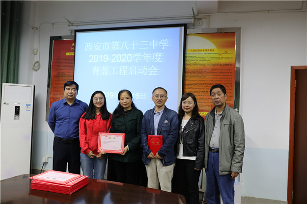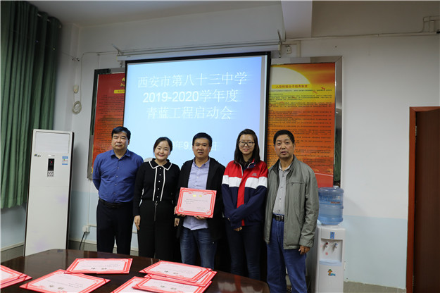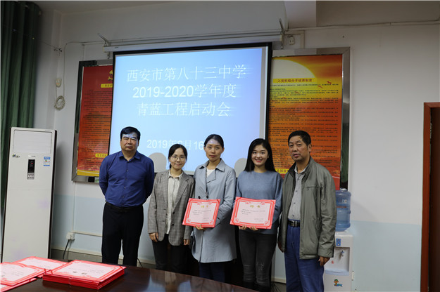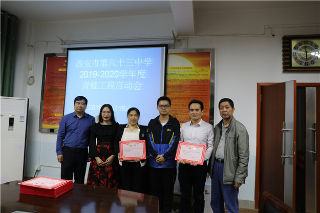 最后刘校长、李瑞民书记“青蓝工程”指导教师和指导班主任颁发聘任证书,并与青年教师和指导教师集体合影留念。