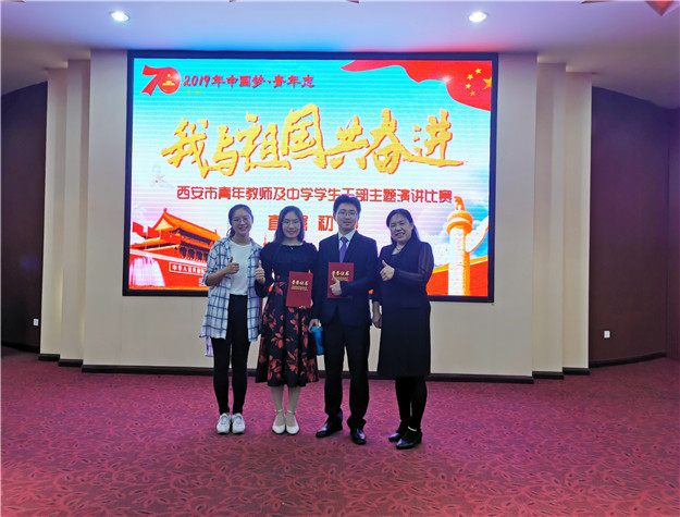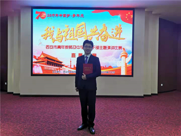 教师组的比赛分为两个环节,各名参赛教师首先进行自选题目的演讲,然后抽题,根据给定题目进行现场即兴演讲。我校严玉老师奉献了激情澎湃的演讲《虽千万人吾往矣》表达了自己对祖国的热爱,打动了在场所有师生。限定演讲中抽到了“阐述生态文明与长治久安的关系”这一比较具有难度的题目,严玉老师凭借平时的积累与高超的临场发挥能力,完美的完成了演讲比赛,最终获得了第二名的好成绩。