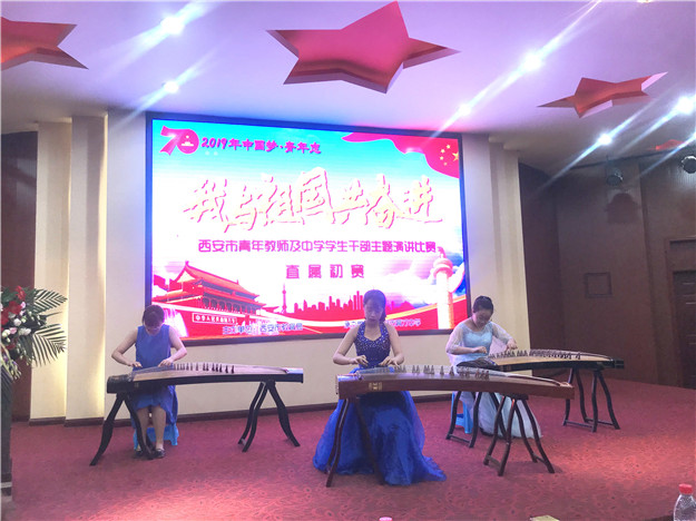 中场休息时,育才中学的学生们带来了琵琶表演,缓解了比赛带来的紧张气氛。