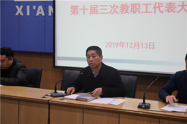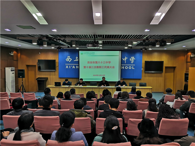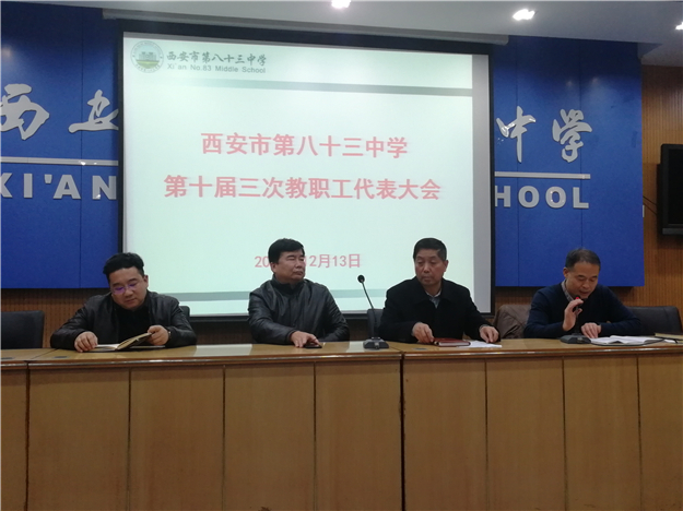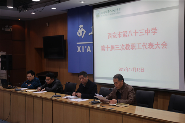 2019年12月13日下午,我校第十届三次教职工代表大会在学校多功能厅召开,本次教职工代表大会的主要议题是:审议《西安市第八十三中学质量提升三年计划(2019-2022)》和《西安市第八十三中学2018年增量绩效奖励办法》,我校校级领导和教职工代表参会,本次教代会由我校副校长、校工会主席李勇主持。