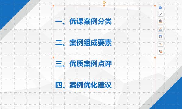 曹老师从优秀案例分析,案例组成要素、优质课例点评和案例优化建议等四大方面进行了优质课素材指导。