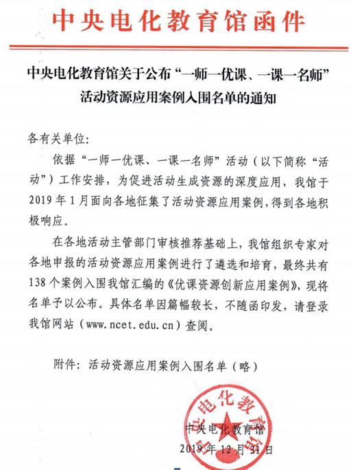 最终经过长达一年的评定工作,付老师部级优质课成功入选。
