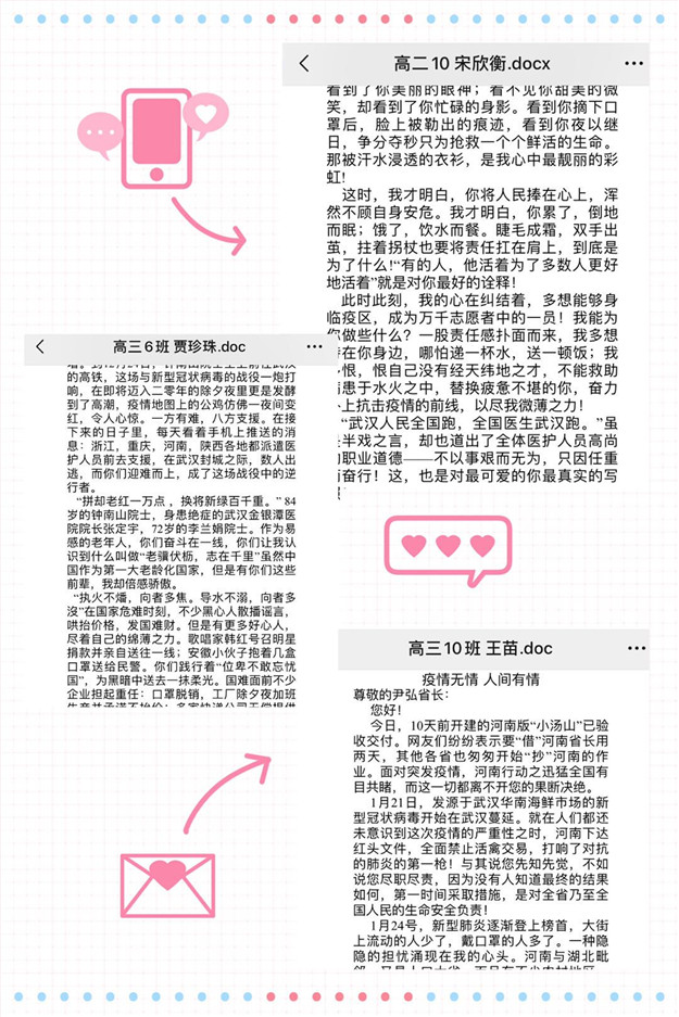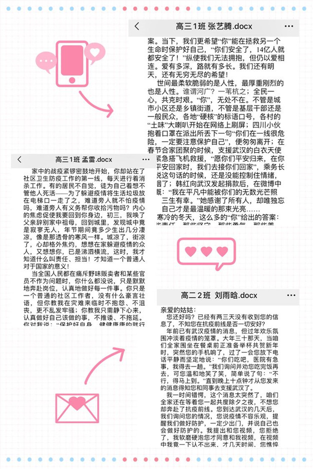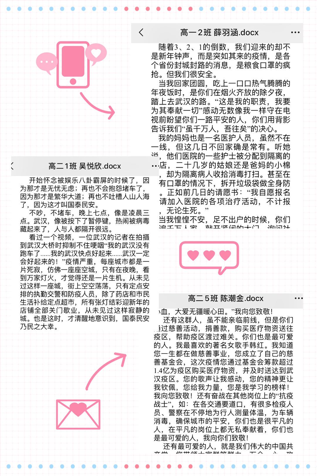 从稿件中我们读到了面对医护工作者的奉献,同学们内心的感动和思考;面对武汉及全国疫情,同学们的坚强和友爱;面对居家学习状态,同学的冷静和自律;面对国家灾难时,同学们的心理成长和觉悟境界……