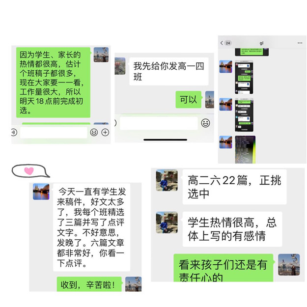 此次征文活动于2月4日晚发出通知,2月6日截稿,不到两天时间,学生提交稿件556篇。2月6日,全体语文组教师一整天都在边收稿便修改、选拔中度过,同学们热情很高,到截稿时间,还有很多同学在提交。