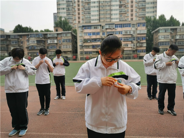 第三项——庄严宣誓。新团员代表张礼龙同学带领新团员进行入团宣誓,所有同学右手握拳,面对着鲜艳庄严的团旗,目光坚定、声音洪亮的说出“我志愿加入中国共产主义青年团,坚决拥护中国共产党的领导……”全体团员响亮的誓言在操场久久回荡。随后,新团员佩戴团徽,更佩戴上了一份责任与担当。