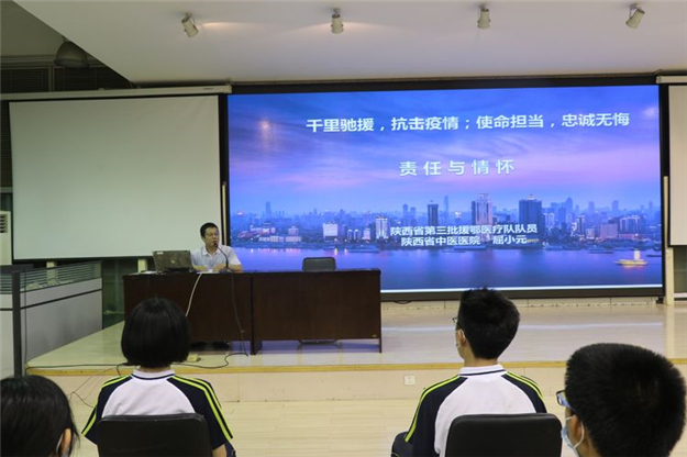 2020年5月29日下午,沙涛副校长邀请陕西省中医院急诊和重症医学科主任屈小元医生莅临我校进行“我身边的抗疫英雄”主题讲座。