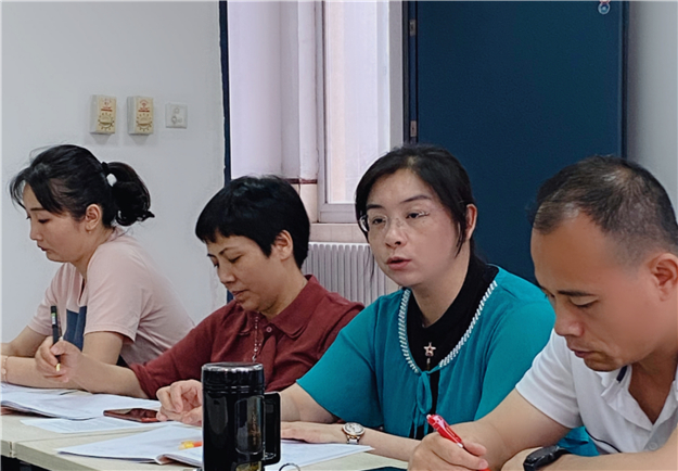 接着,王永华老师主持评课和交流研讨,首先提出刘老师的好学精神和素材利用能力值得英语组每一位老师学习。董翠翠老师也十分佩服刘老师的教学资源整合,她以2019年高考试题为例,指出了近几年高考试题对词汇考查的侧重点变化与特点,认为培养学生的思维是词汇学习的重要部分。同时,董老师认为本堂课中的德育渗透和多媒体辅助教学的精巧用心亦是课堂亮点。