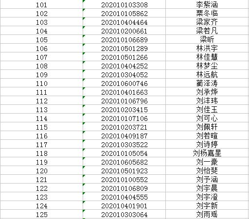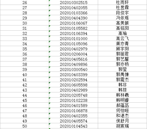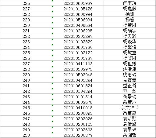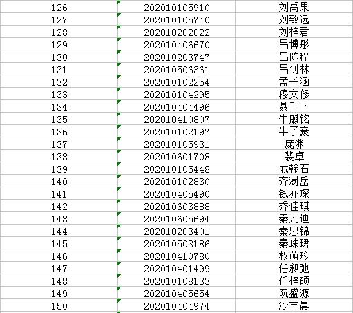 西安市第八十三中学2020年高一新生录取名单(城六区)