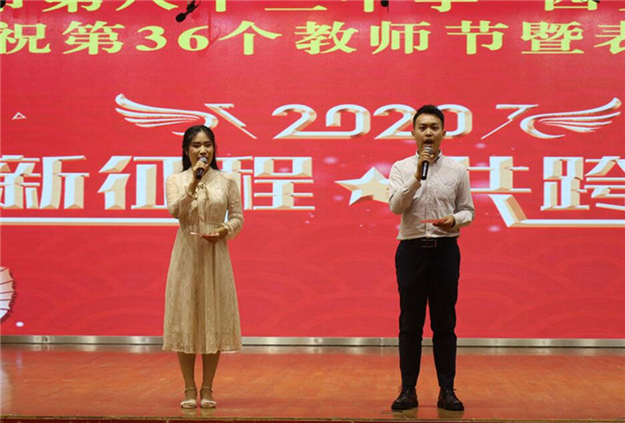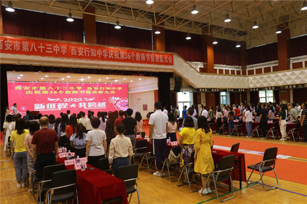 三尺讲台存日月,一支粉笔写春秋。讲台上、书桌旁,寒来暑往、日复一日,循循善诱、立德树人,培养学子成长成才,助力每个家庭的梦想,是他们洒下心血点点,他/她们就是最值得我们礼赞、最值得我们尊敬的人——老师。2020年9月10日,在第36个教师节来临之际,西安市第83中学、西安行知中学两校在83中体育馆二楼隆重举办“庆祝第36个教师节活动”。两校校级领导、全体教职工和部分学生代表参加了本次庆祝活动。