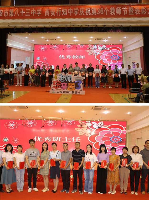 本次庆祝表彰活动为我校营造了尊师重教的浓郁氛围,为进一步落实三年行动计划,把我校建成西安一流名校,进一步助力和推动我校教育教学高质量发展!