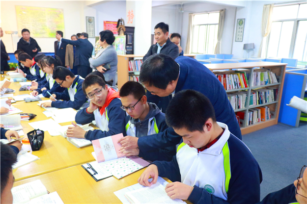 督导评估组一行通过听取校长汇报、参观校园环境、观看学生活动、查看学校部室、推门听课、查阅资料及召开教师、学生、家长座谈会等,以听、查、看、访、测、评的方式,对学校办学方向、队伍建设、教育质量与管理、教育信息化、教学保障、学生素养、办学成效等7个方面进行了全面深入的评估检查。