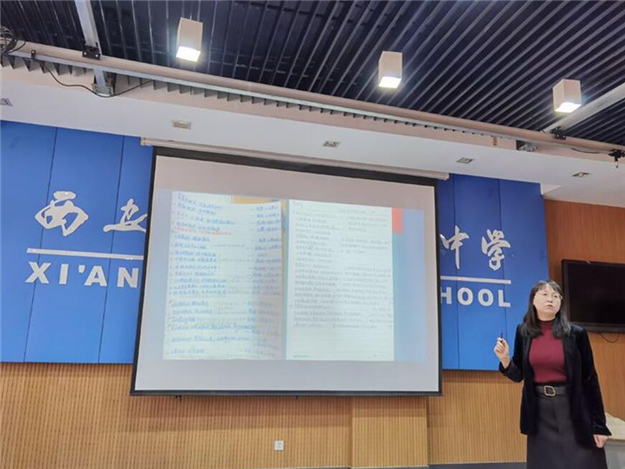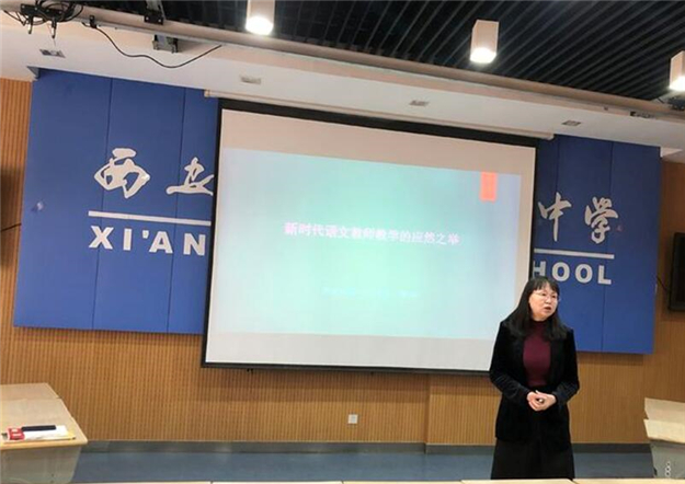 会议伊始,高玲老师作了“新时代语文教师教学的应然之举”主题讲座。高老师以自己的课例《说木叶》作为引入,对自己的阅读教学实践情况做了分享。