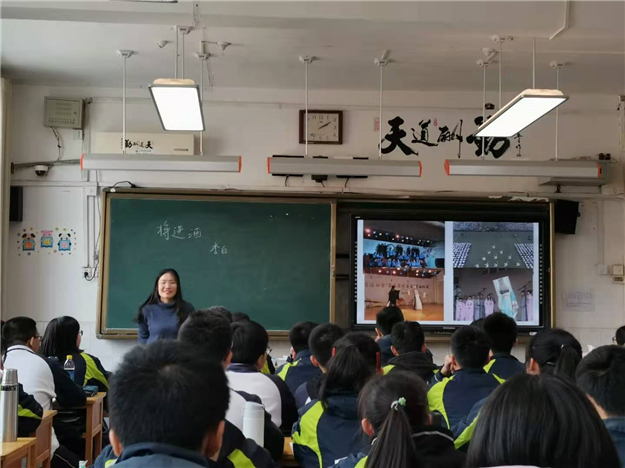 本次活动分为两个环节,首先,青年教师严玉在高二五班进行了公开课《将进酒》。