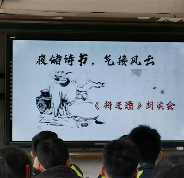 这杯酒下肚,全体师生已然进入酣然状态。精彩的教师范读,将李白的醉态展现的淋漓尽致,严玉老师用自己独特的“醉读”赢得了师生的热烈掌声,将课堂推上了高潮。