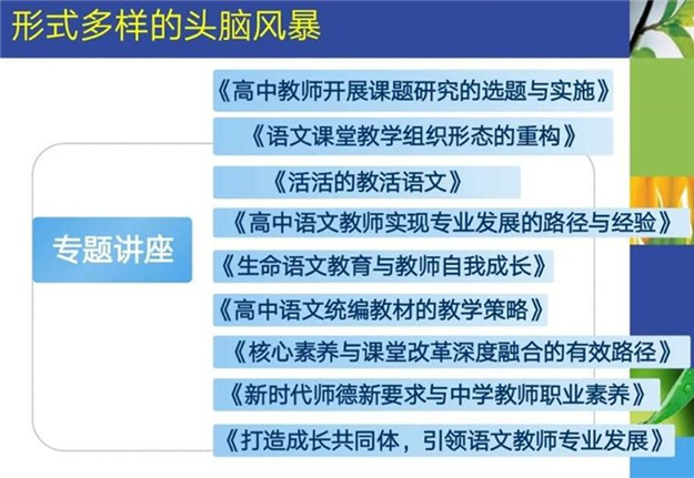接着,由曹曼老师分享参加陕西省高中教师脱产研修学习的收获。曹老师将本次活动称为“形式多样的头脑风暴”,她将此次培训的特色总结为:“理念先进、内容丰富”,“理论高度,实践指导”,“深入浅出、精辟透彻”,并通过分享报告和课堂实录的方式为组内教师分享学习成果。