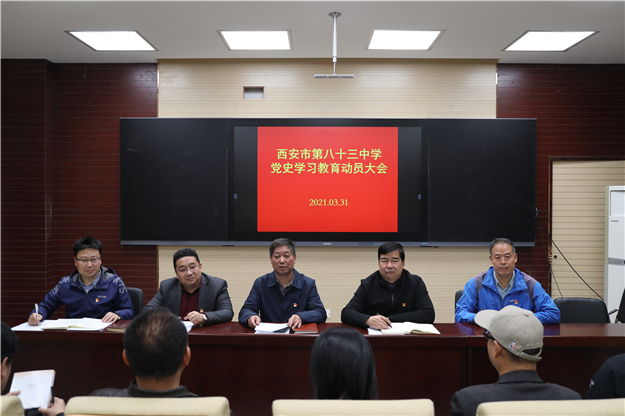 为认真贯彻习近平总书记在党史学习教育动员大会上的重要讲话精神,对标中央、省委、市委和市教育局党委部署要求,扎实开展党史学习教育工作,3月31日下午,我校在阶梯教室召开了党史学习教育动员大会。本次会议对全校党员教师开展党史学习教育进行动员部署,组织引导我校党员教师扎实开展党史学习教育,做到学史明理、学史增信、学史崇德、学史力行,学党史、悟思想、办实事、开新局。