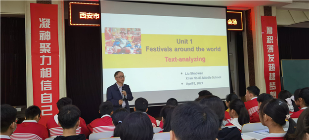 4月8日,2021年西安市高中新课程优质课大赛(英语学科)在西安市远东二中举行,我校刘少文老师参加了英语学科“同课异构”现场课活动,展现了名师风采。本次活动主题为:聚焦主题语境,深入挖掘文本。教学内容是人教版高中英语第三册第一单元精读文章Festivals around the world(世界各地的节日)第二课时。