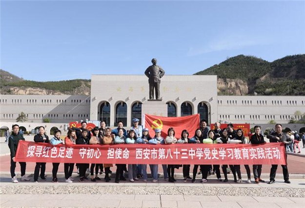 为了庆祝中国共产党成立100周年,回顾党的百年光辉历程,弘扬红色精神,增强党组织的凝聚力,战斗力和号召力,2021年4月16日,西安市第八十三中学党总支组织部分党员前往革命圣地延安,开展了以“弘扬延安精神探寻红色足迹”为主题的党史学习教育实践活动。