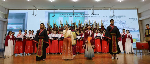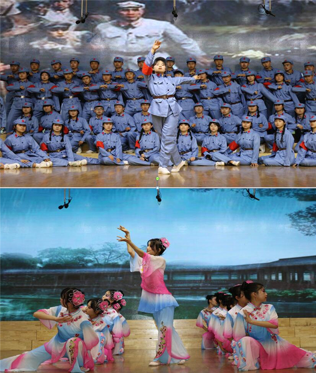 拳拳赤子心,浩浩中华魂。西安东方中学带来的歌伴舞《卢沟谣》,西安交通大学附属中学舞蹈《情深谊长》,西安市第八十三中学情景剧《绵棉丝路情》、学生独白《我的一九一九》、歌伴舞《唱支山歌给党听》,宜君县高级中学朗诵歌舞《长征组歌》,西安东方中学古筝合奏《山丹丹开花红艳艳》,西安黄河中学舞蹈《细雨屋前》,一个个精彩的节目为在场师生带来了一场艺术的饕餮盛宴。