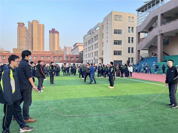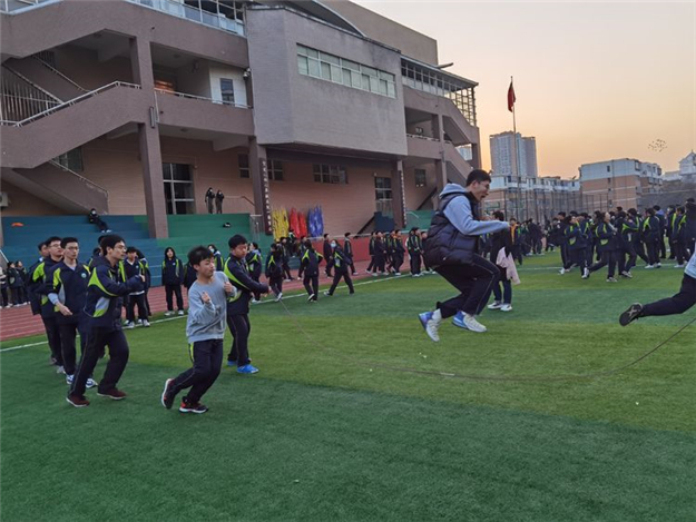 为丰富我校高三年级学生的课余生活,展现高三学子无所畏惧、迎难而上的冲刺高考的精神风貌,高三年级组于12月8日下午举办了一场充满青春与活力的跳大绳接龙比赛,纵享跳跃带来的喜悦和舒畅。本次活动在学校领导的支持下,由体育组、德育处和高三年级组组织开展。