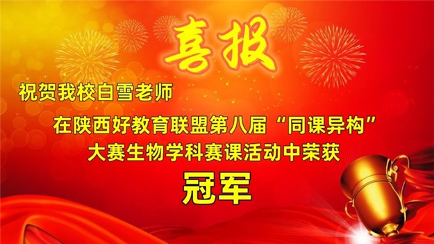 2022年5月16日至17日,“陕西好教育联盟第八届同课异构大赛西安赛区”英语、生物、地理学科在西安市第八十三中学成功举办。我校白雪老师在生物学科赛课活动中荣获冠军。