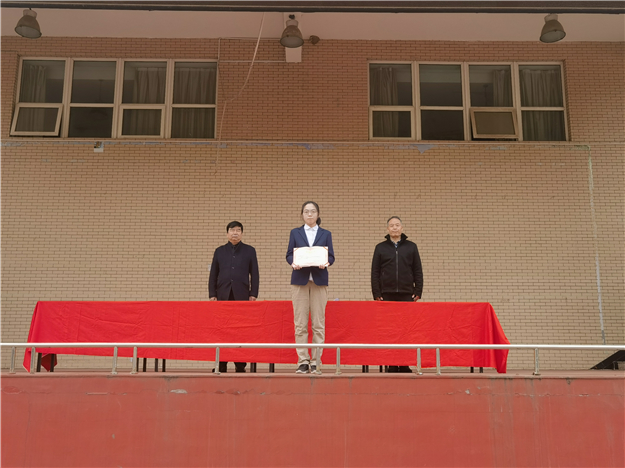 为2022年西安市“十佳中学生”获得者贾钰彤同学(高三1班)颁奖