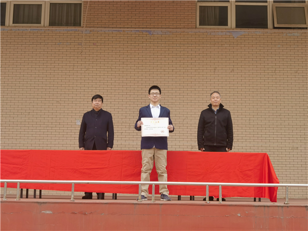 为2022年陕西省普通中学“优秀学生干部”获得者唐敬轩同学(高三8班)颁奖