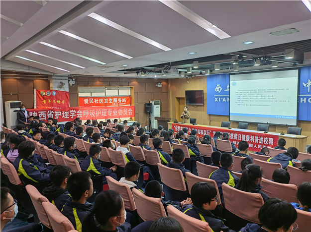 学校是传染病的易发场所,为了有效预防常见传染病的发生,进一步增强师生对常见传染病的防控意识,在第二十八个世界防治结核病日到来之际,2023年3月24日,陕西省第四人民医院、陕西省护理学会呼吸护理专业委员会、韩森寨社区卫生服务中心联合爱民社区卫生服务站在西安市第八十三中学举办了结核病防治知识专题讲座。