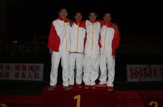高一4班陈创宇同学荣获高中男子组4X400米接力比赛第三名。