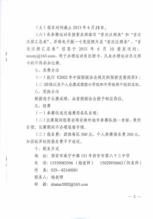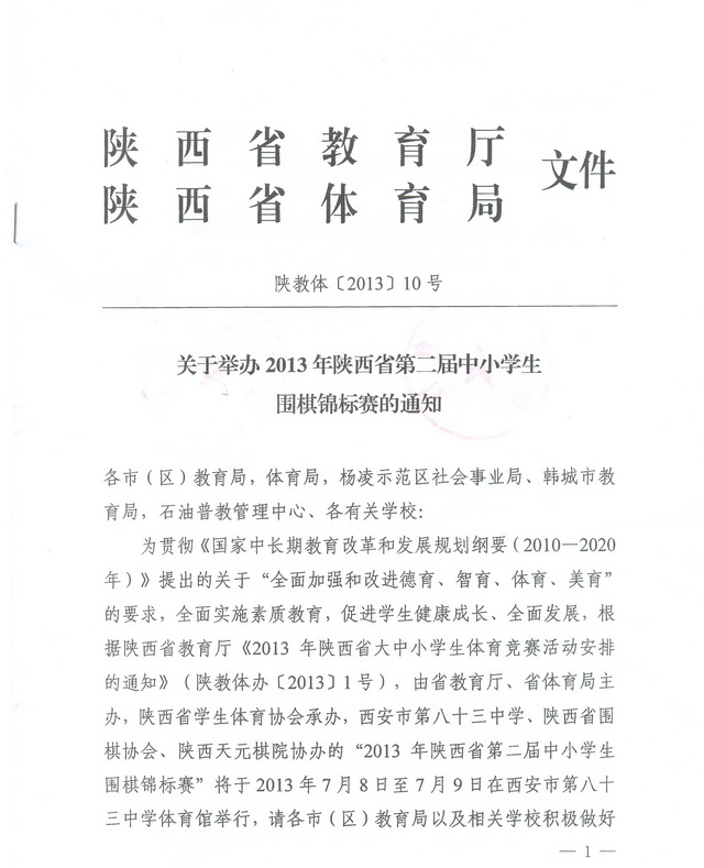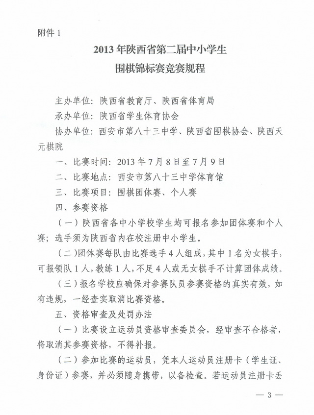 2013年陕西省中小学生围棋锦标赛