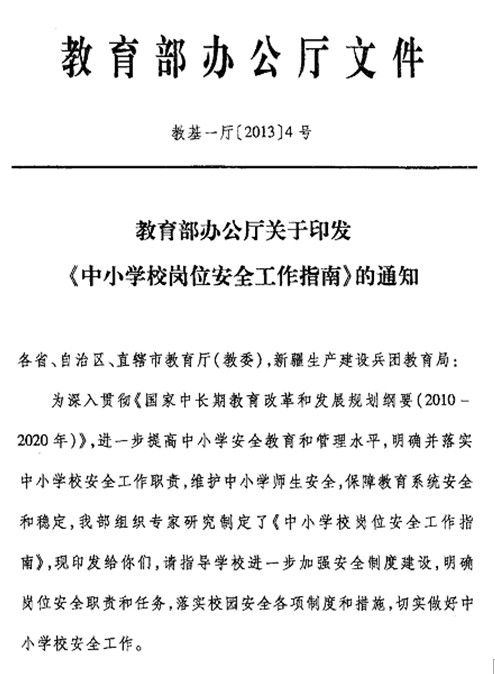教育部办公厅关于印发《中小学校岗位安全工作指南》的通知